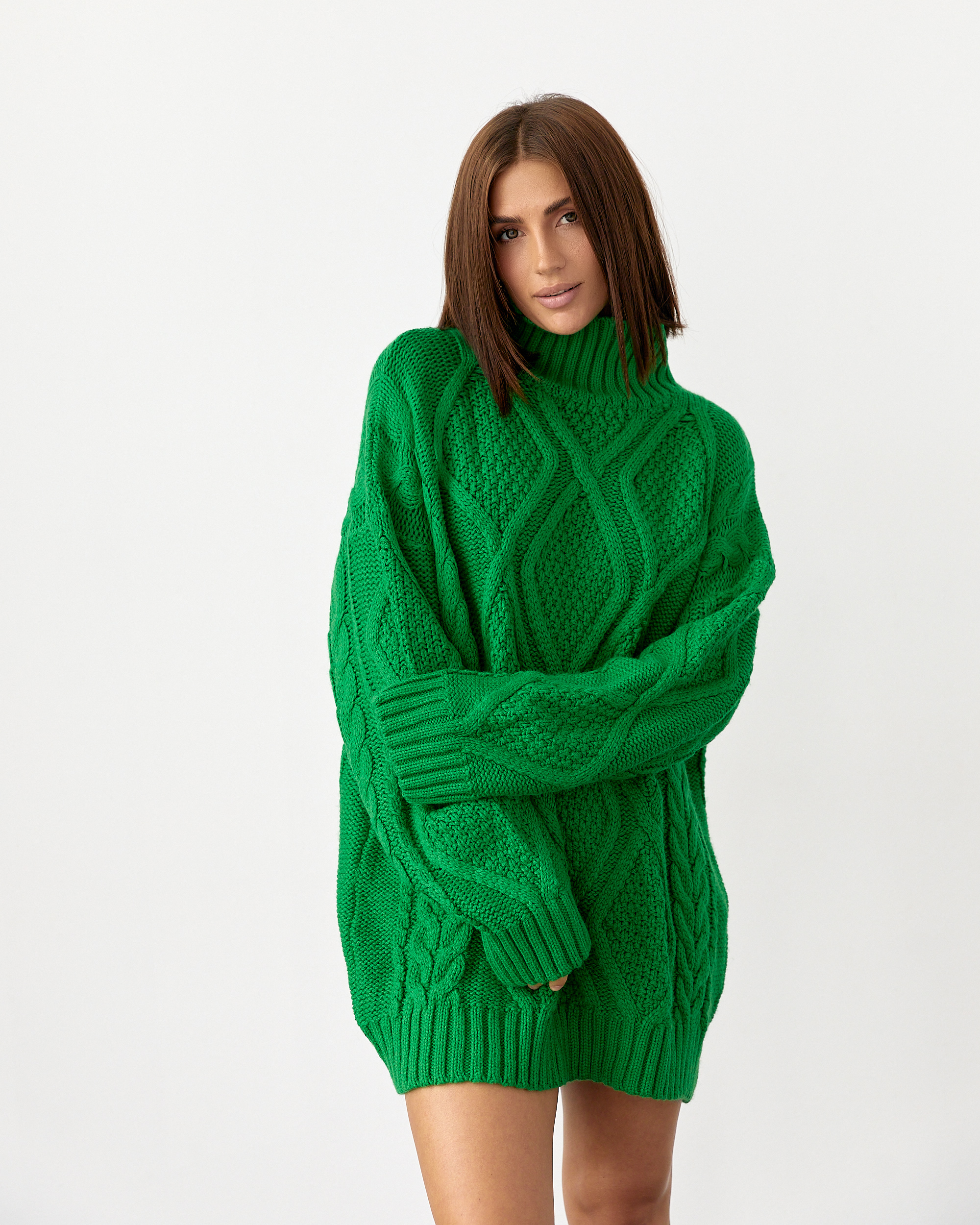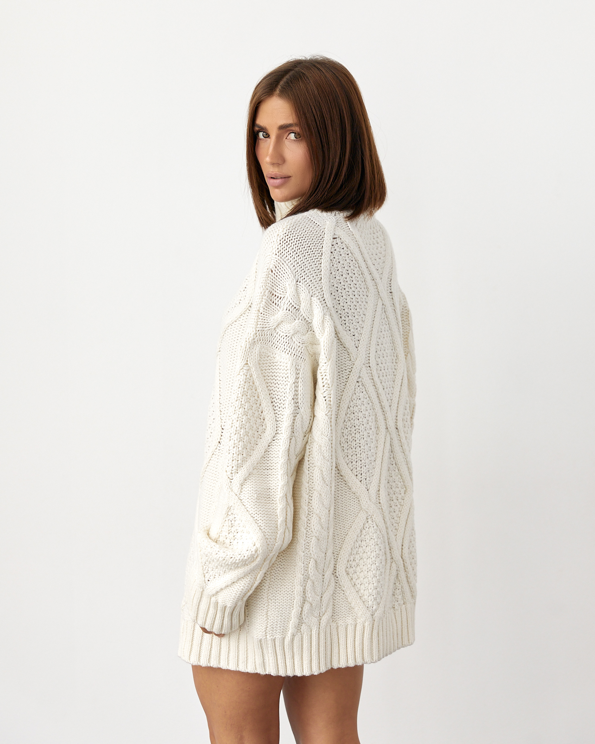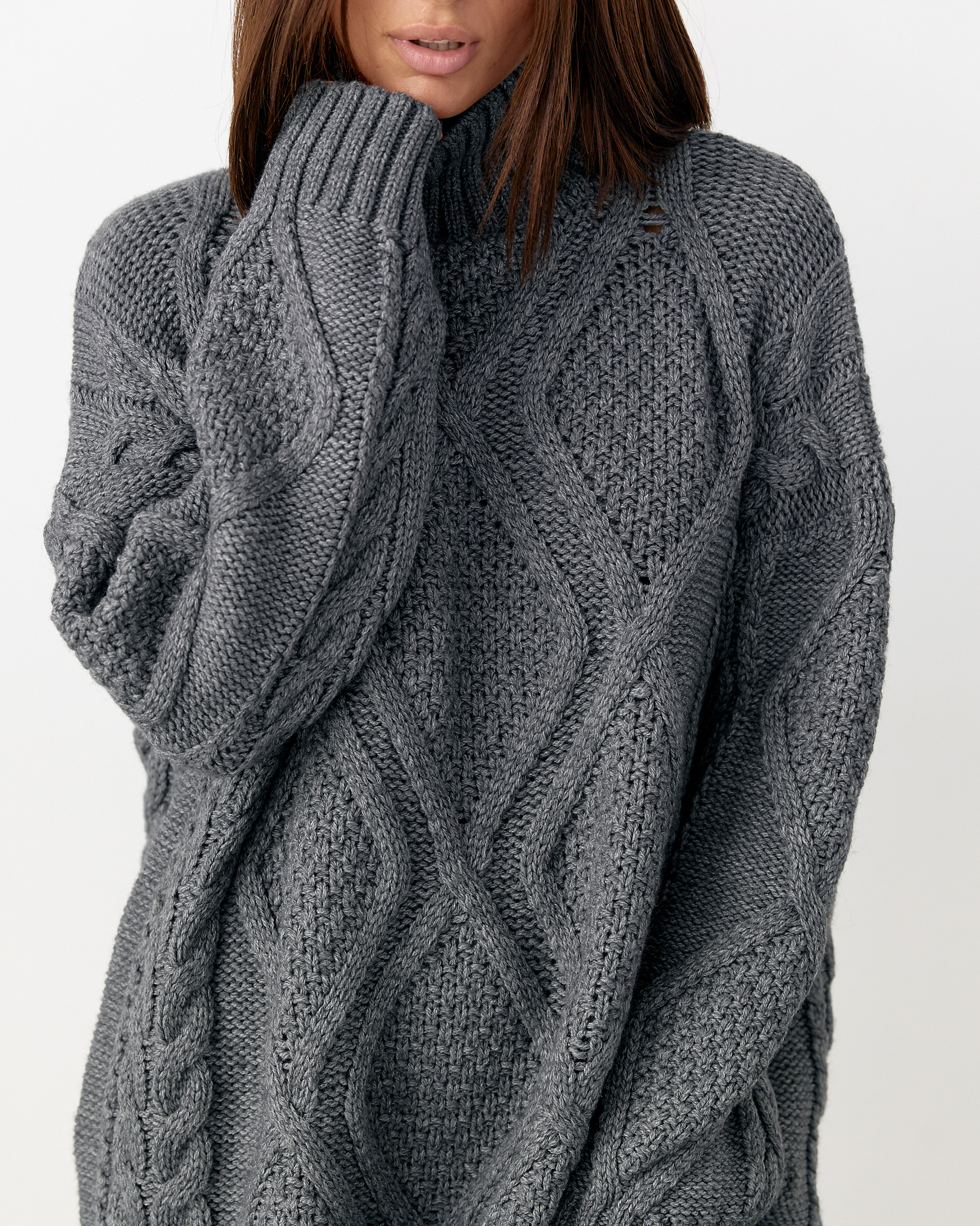 50% Меринос 50% Акрил Об’ємний светр oversize. М’яка, тепла в’язка, яка огортає ніжністю. Трендовий візерунок «коси». Вільний крій