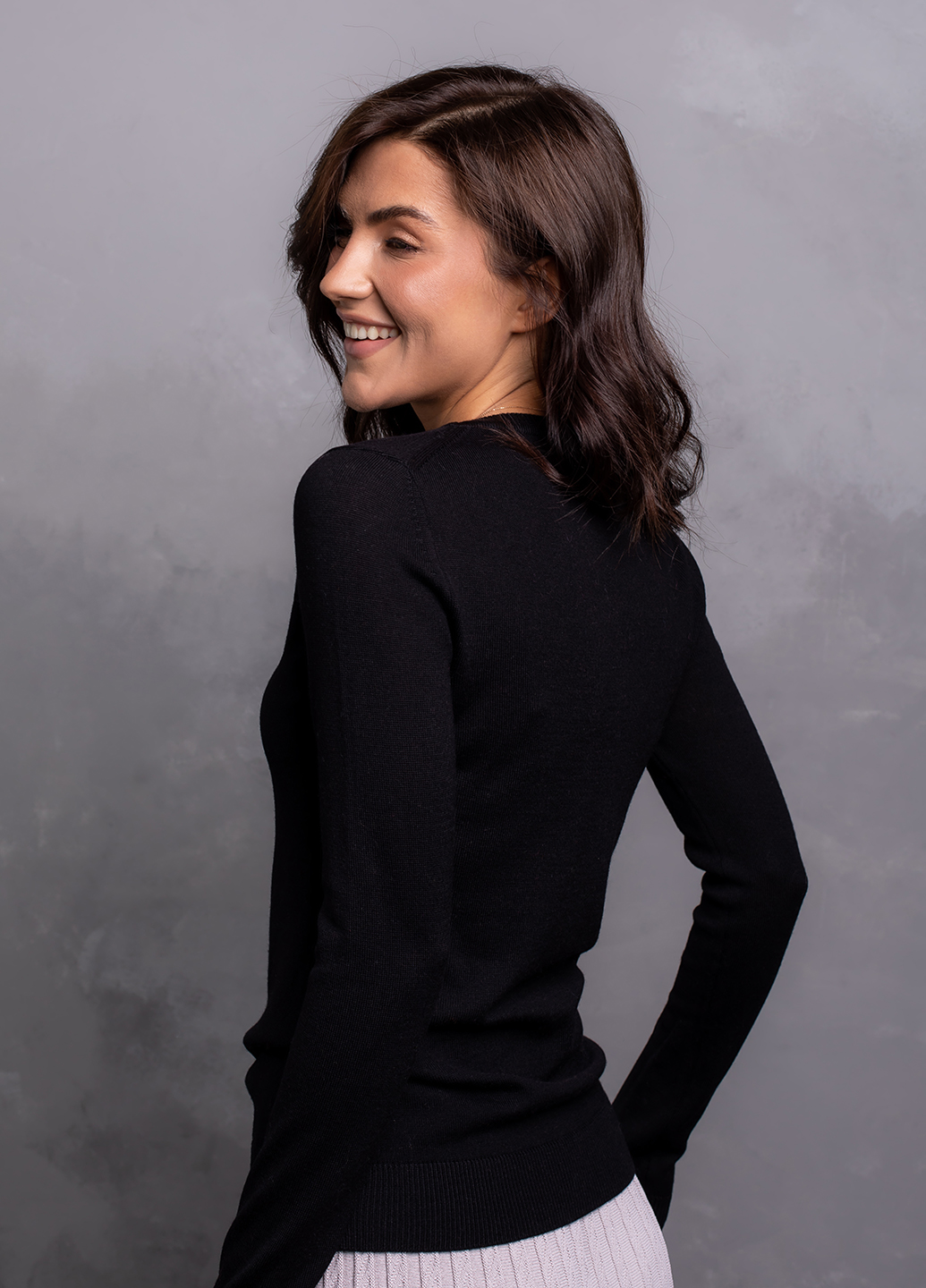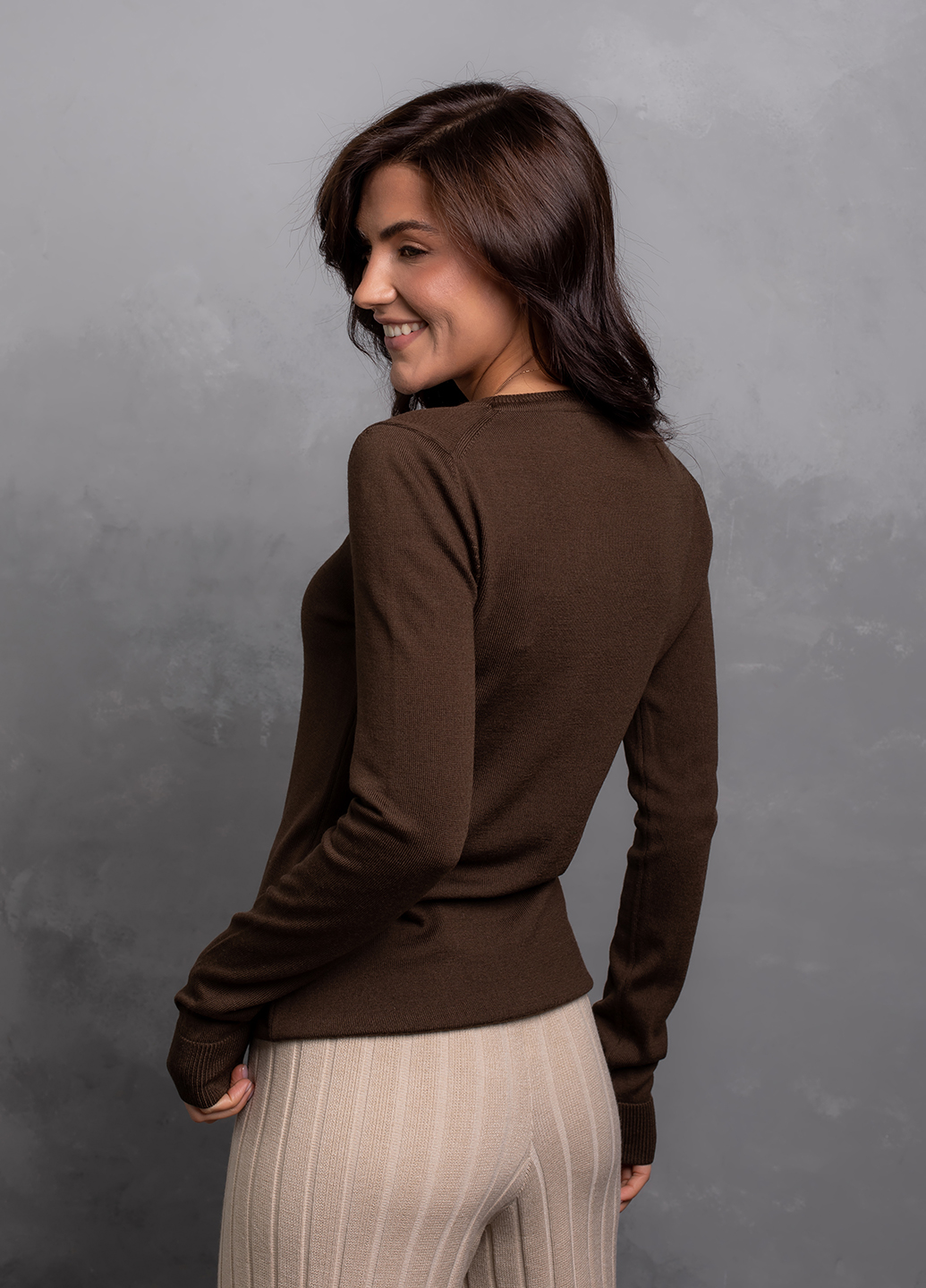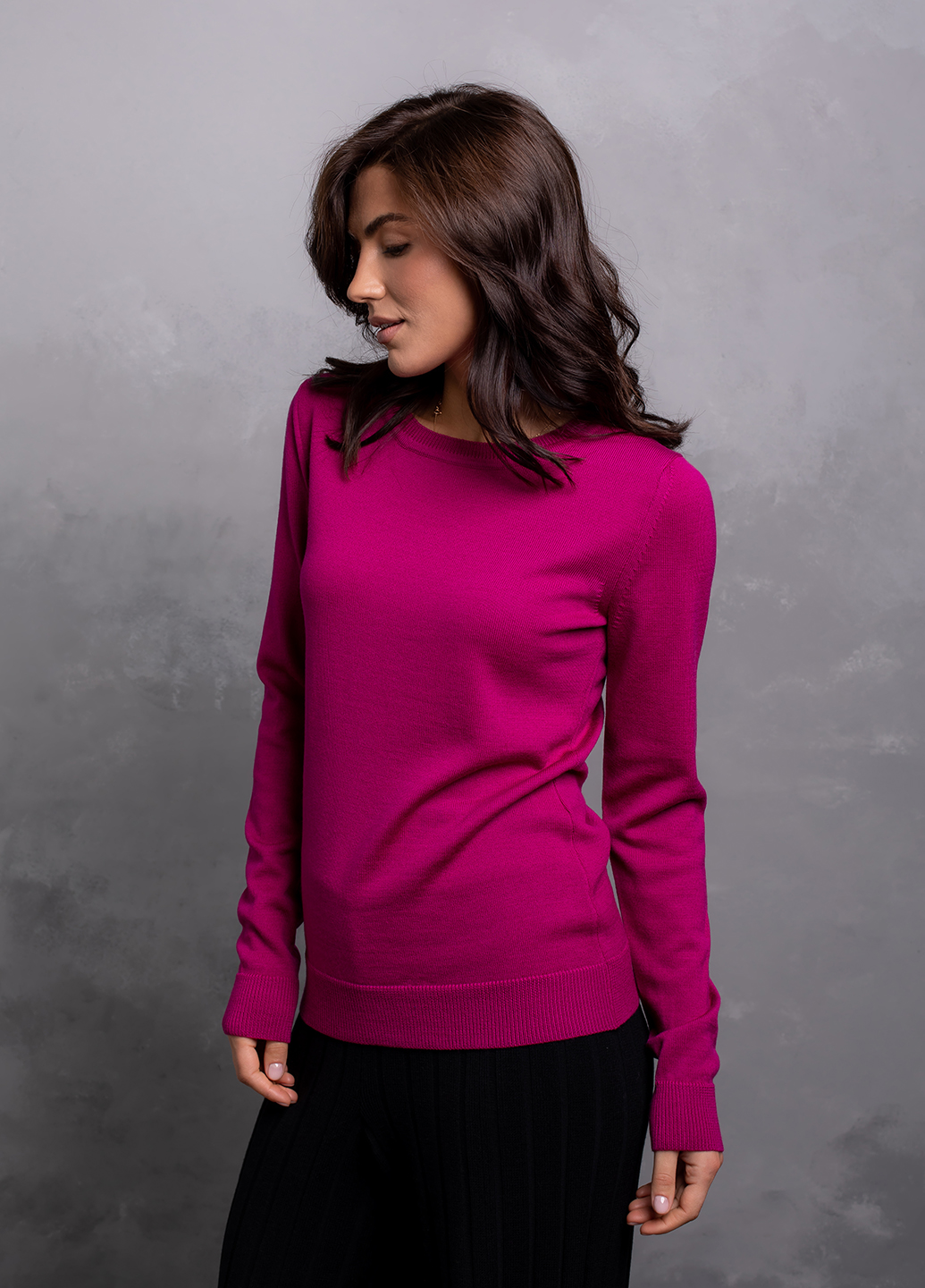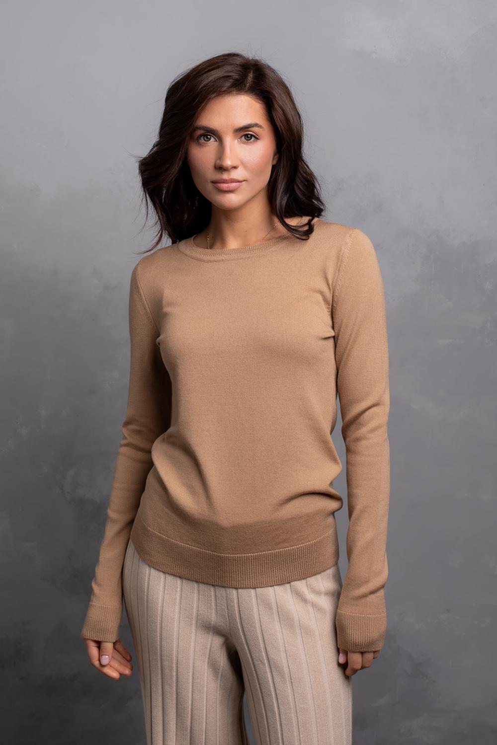 Ультратонкий, комфортний базовий джемпер, виконаний з м'якої, гіпоалергенної та приємної на дотик мериносової вовни – це не просто одяг, який зігріває, але і можливість створювати надзвичайно жіночні та елегантні образи в будь-якому стилі. Строгі лінії і лаконічний крій виробу демонструють витонченість, яка доречна завжди і всюди.
