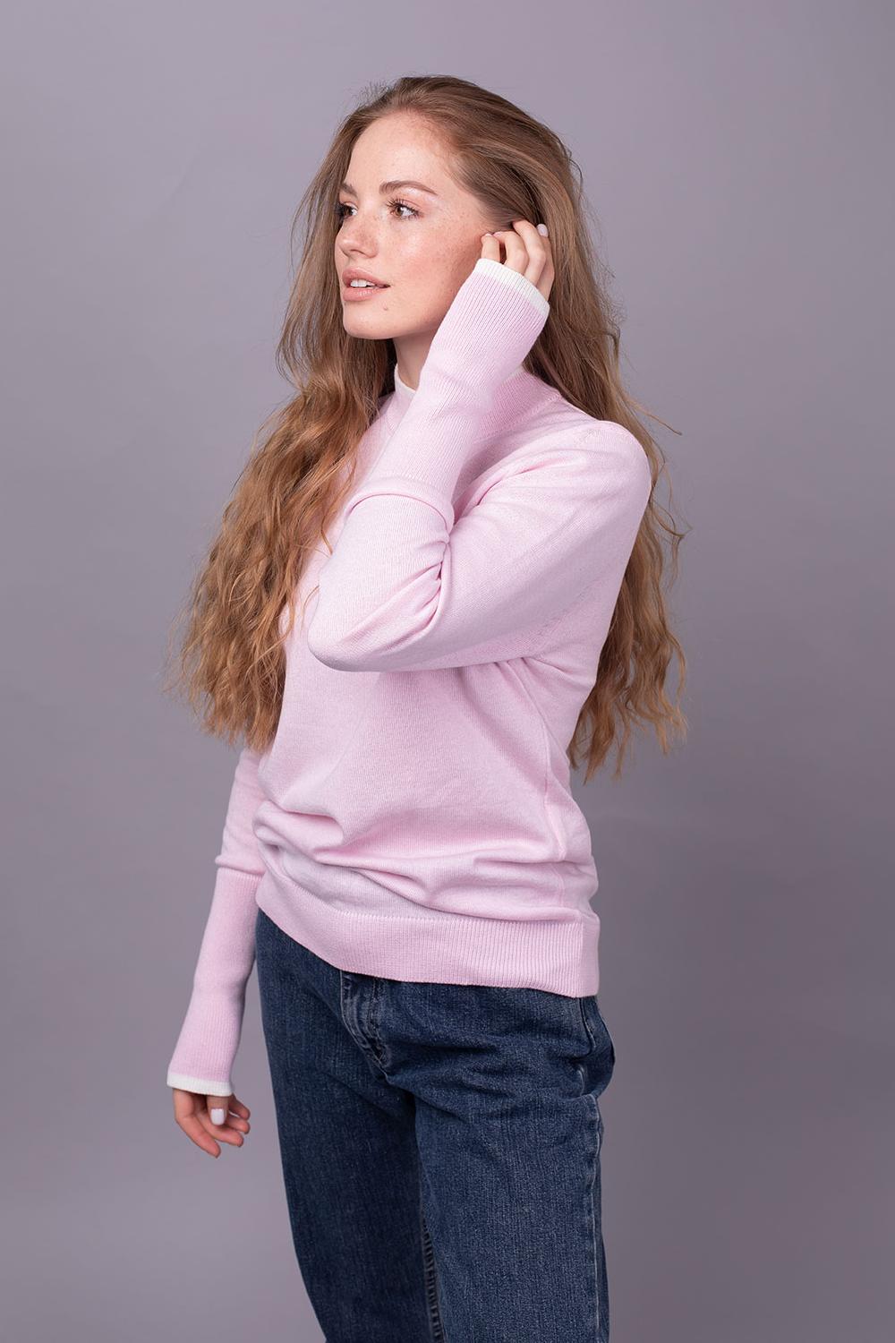 Тонкий та дуже комфортний джемпер з м'якої, гіпоалергенної та приємної на дотик пряжі – універсальна модель, яка чудово підійде для створення елегантного образу у будь-якому стилі. Унікальність джемпера полягає в тому, що це річ базового гардеробу, яка чудово справляється як з роллю самостійної одиниці, так і є незамінною основою багатошарових комплектів, а цікава деталь у вигляді тонких контрастних смужок на довгих манжетах та горловині привертатиме до себе увагу. Бавовнові волокна дуже легкі, гігроскопічні та 100% натуральні; вони добре утримують тепло.
