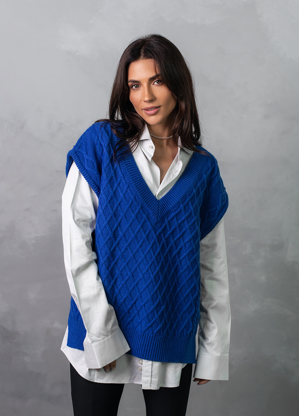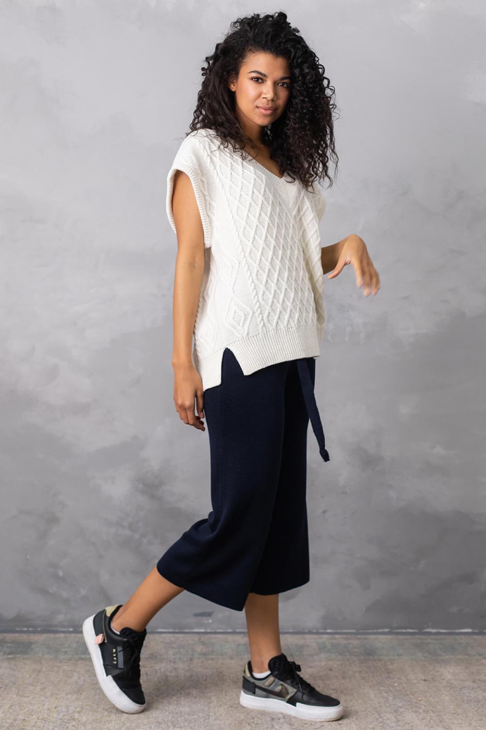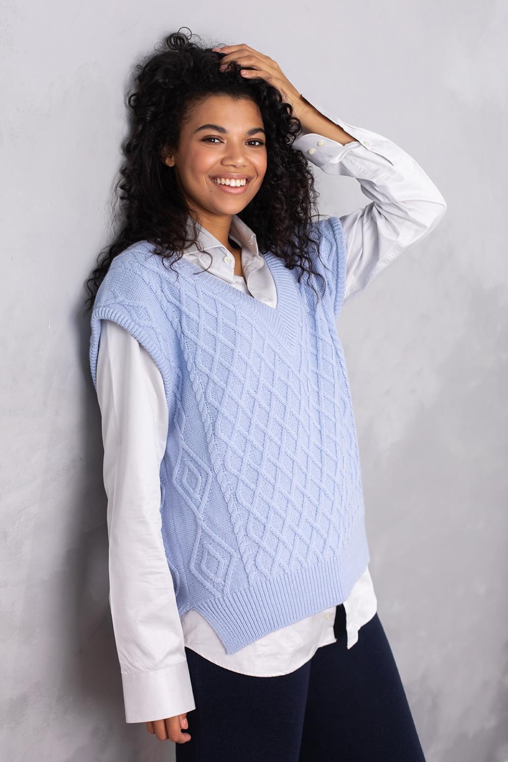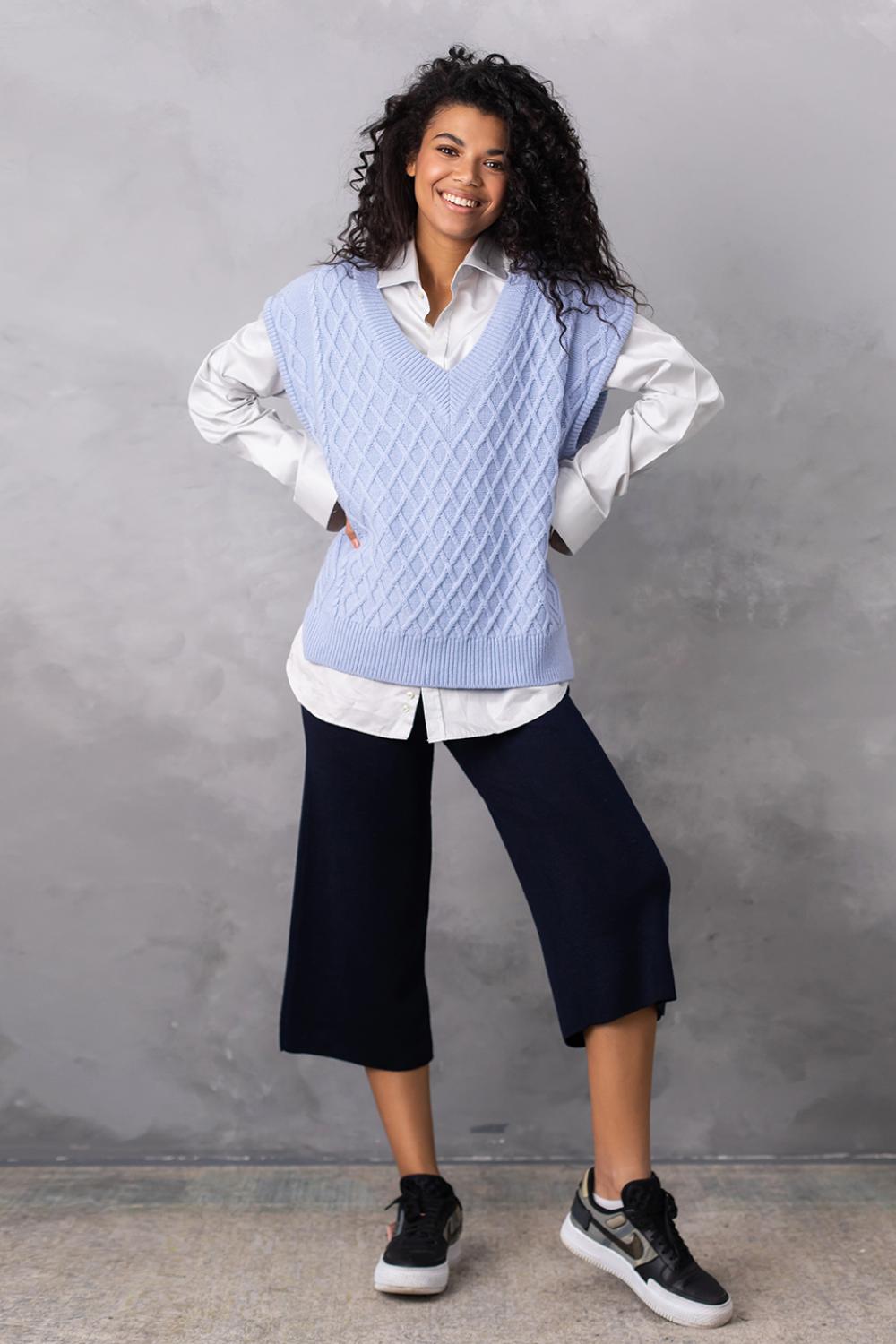 Об'ємний в'язаний жилет оверсайз з глибоким V-подібним вирізом - найяскравіший тренд цього сезону! Завдяки вдалому крою, стильний в'язаний жилет приховає недоліки фігури, а також зробить зону декольте більш привабливою.