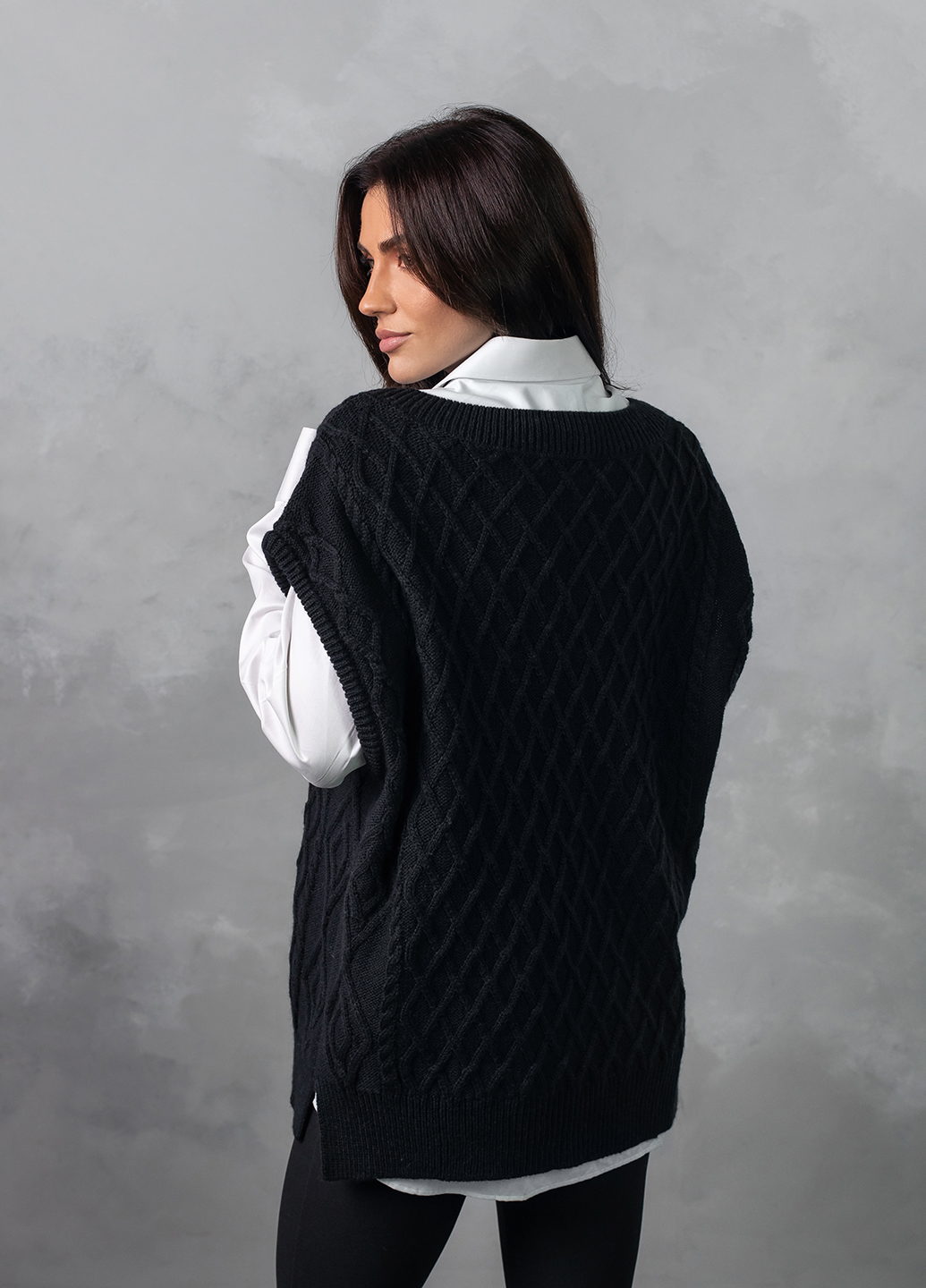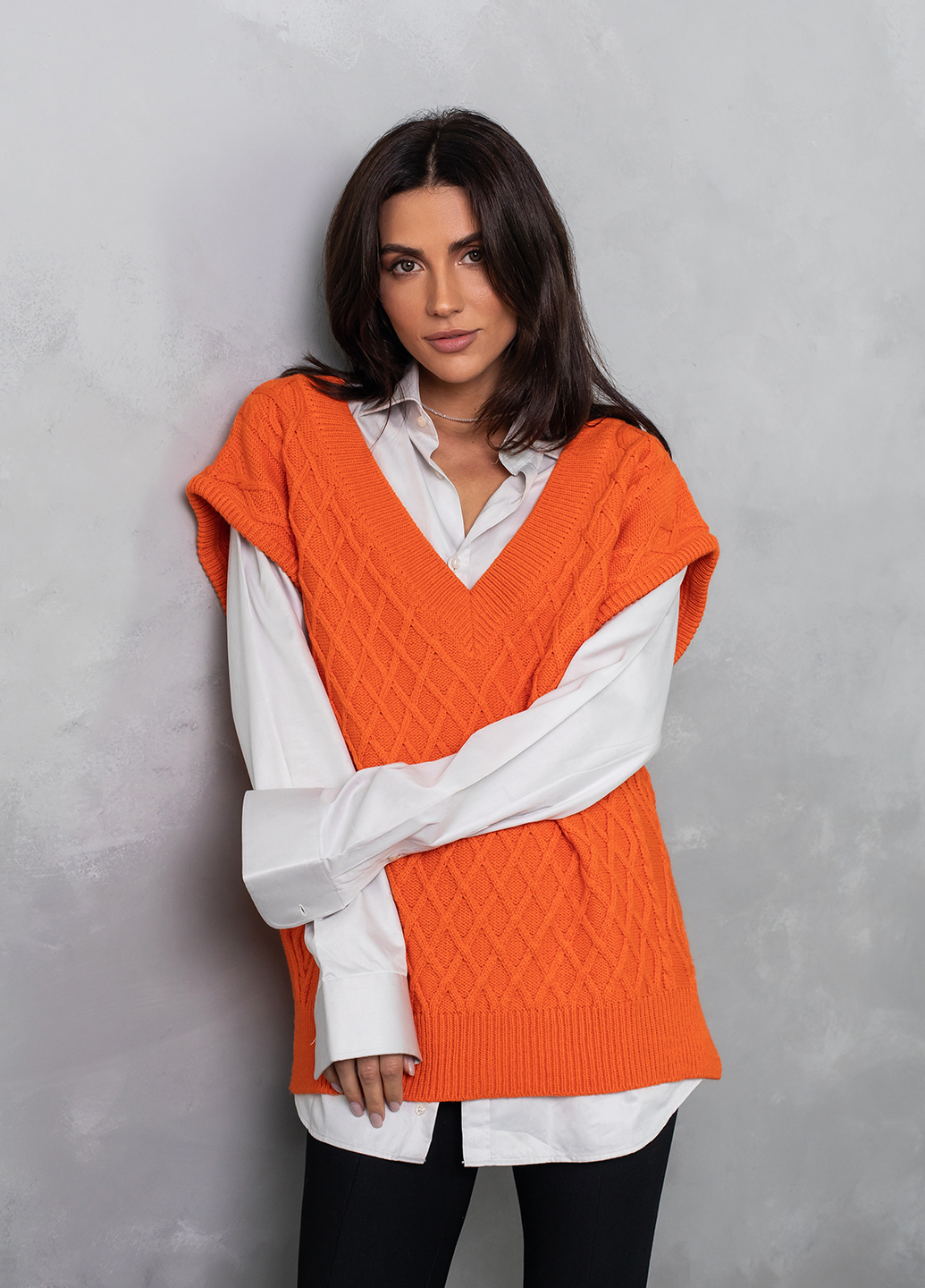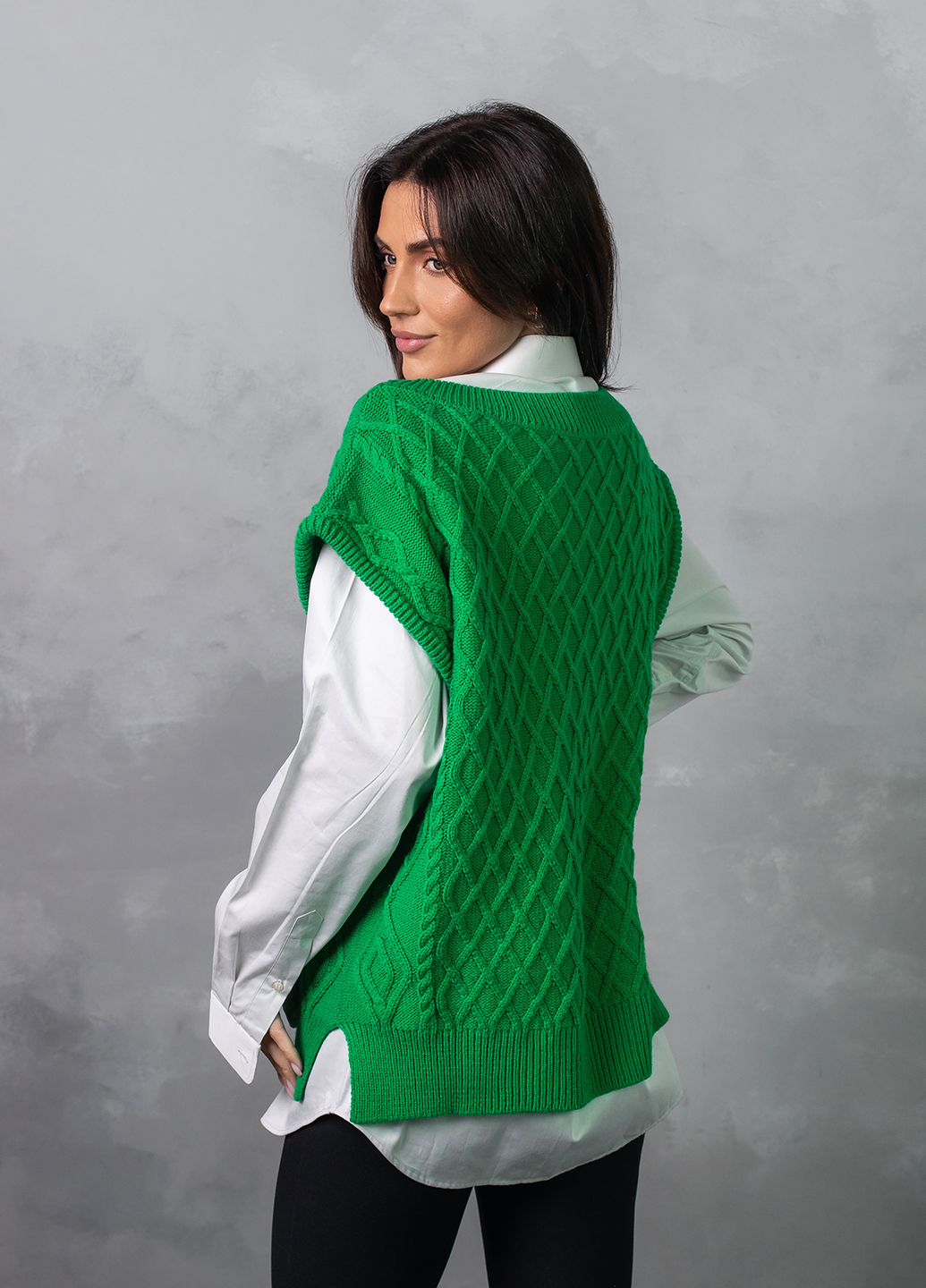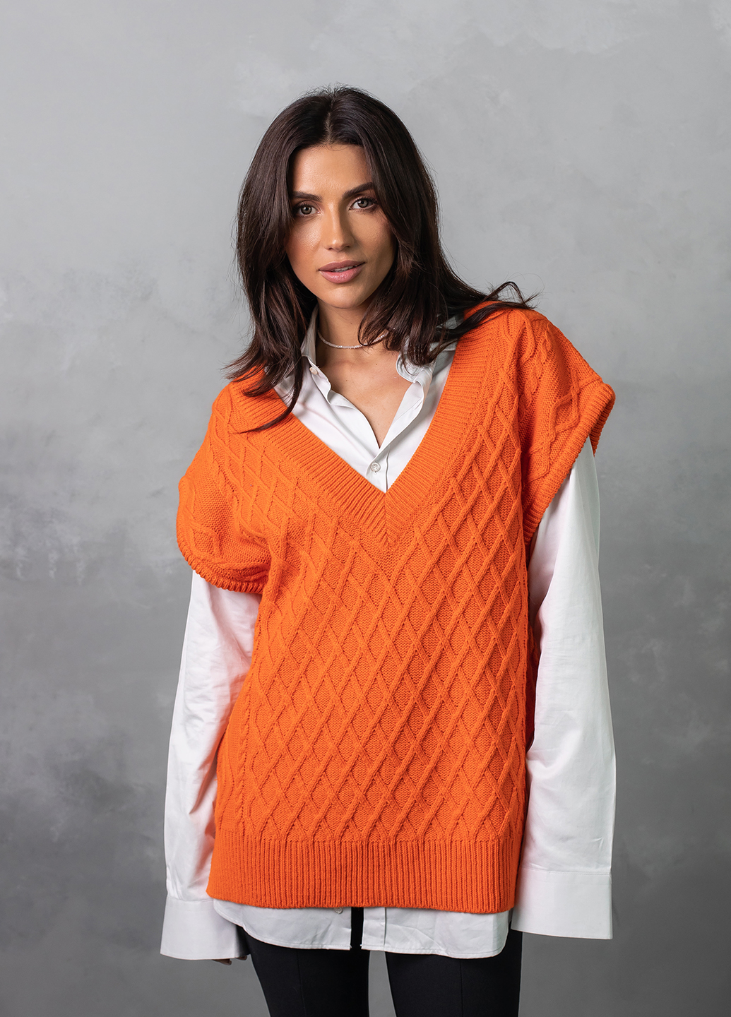 Об'ємний в'язаний жилет оверсайз з глибоким V-подібним вирізом - найяскравіший тренд цього сезону! Завдяки вдалому крою, стильний в'язаний жилет приховає недоліки фігури, а також зробить зону декольте більш привабливою.