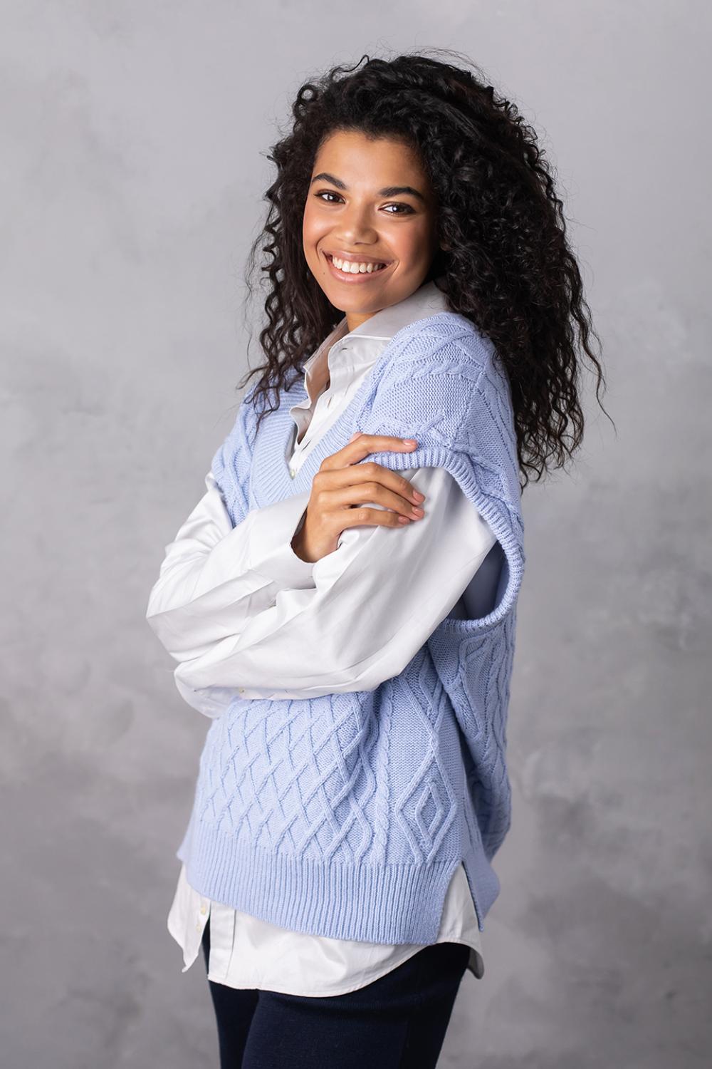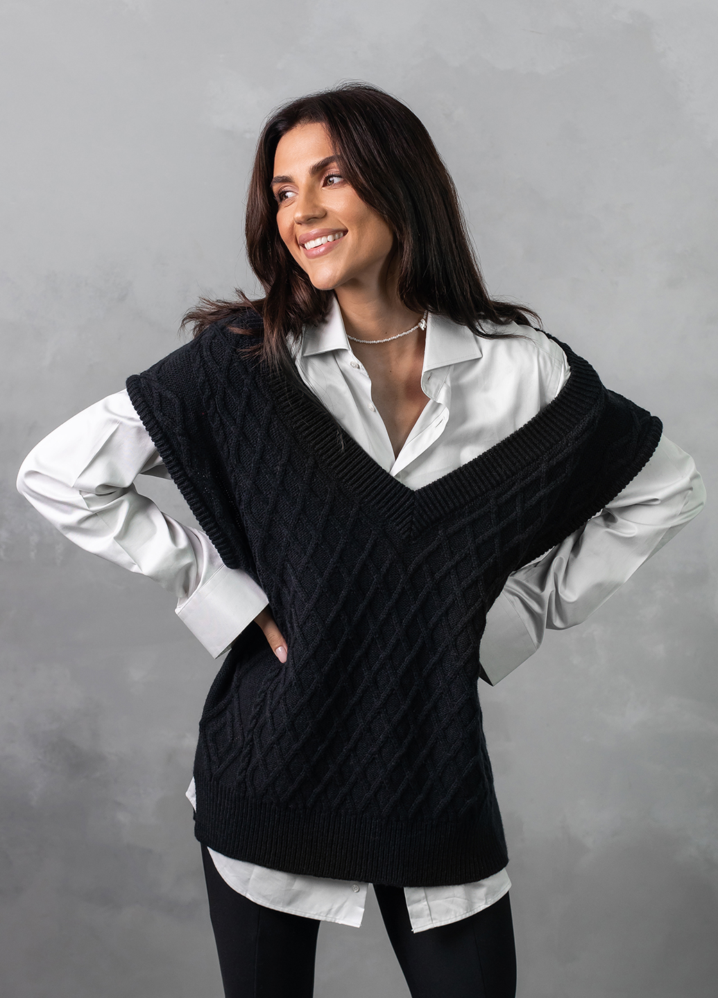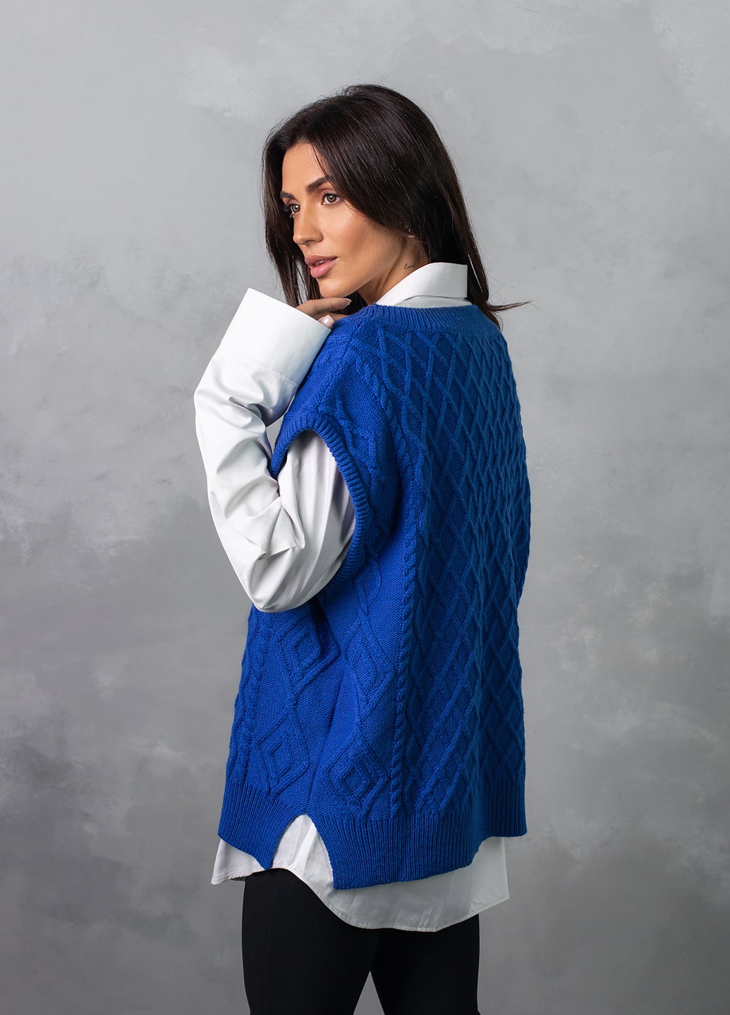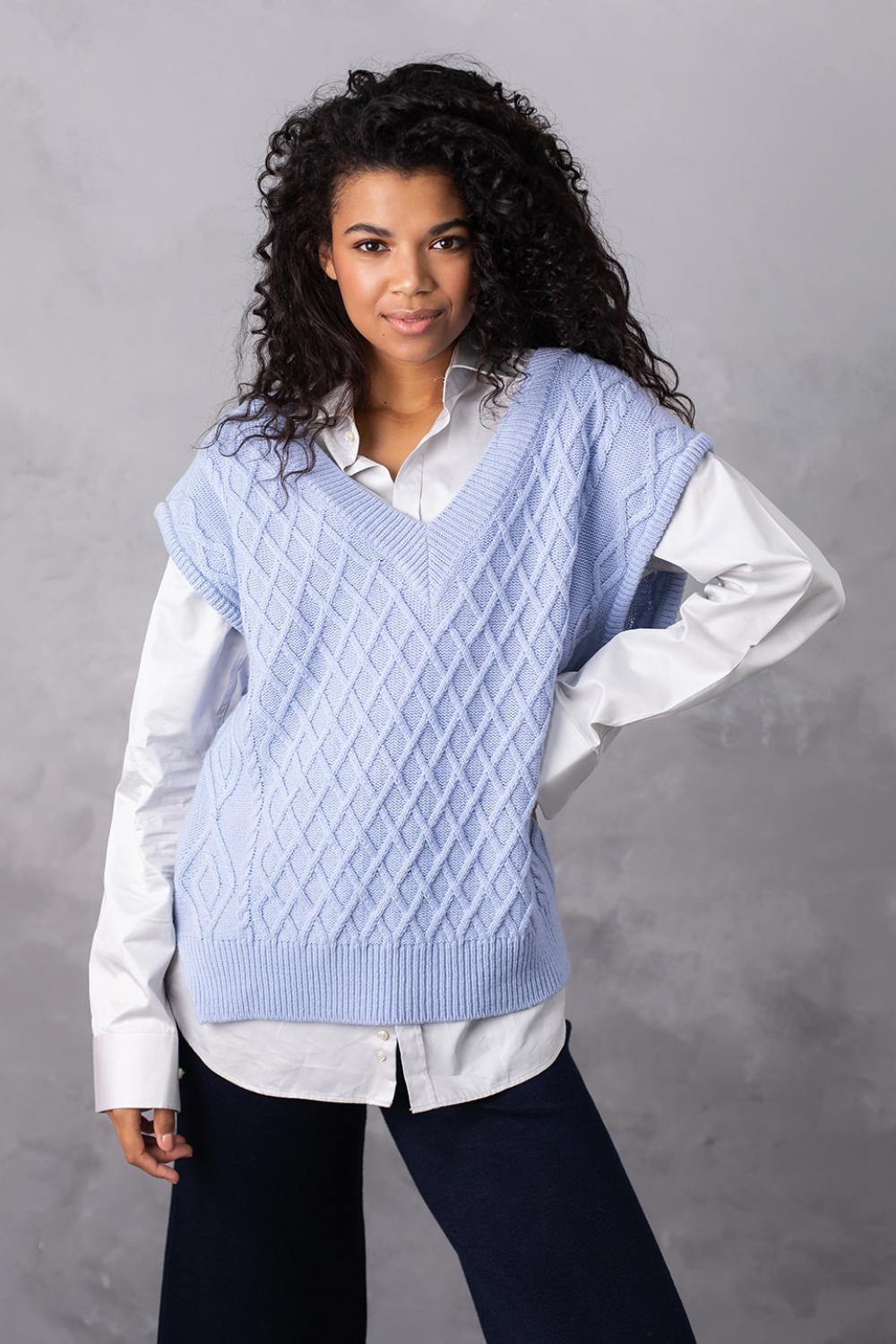 Об'ємний в'язаний жилет оверсайз з глибоким V-подібним вирізом - найяскравіший тренд цього сезону! Завдяки вдалому крою, стильний в'язаний жилет приховає недоліки фігури, а також зробить зону декольте більш привабливою.