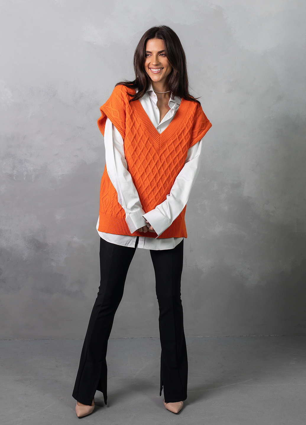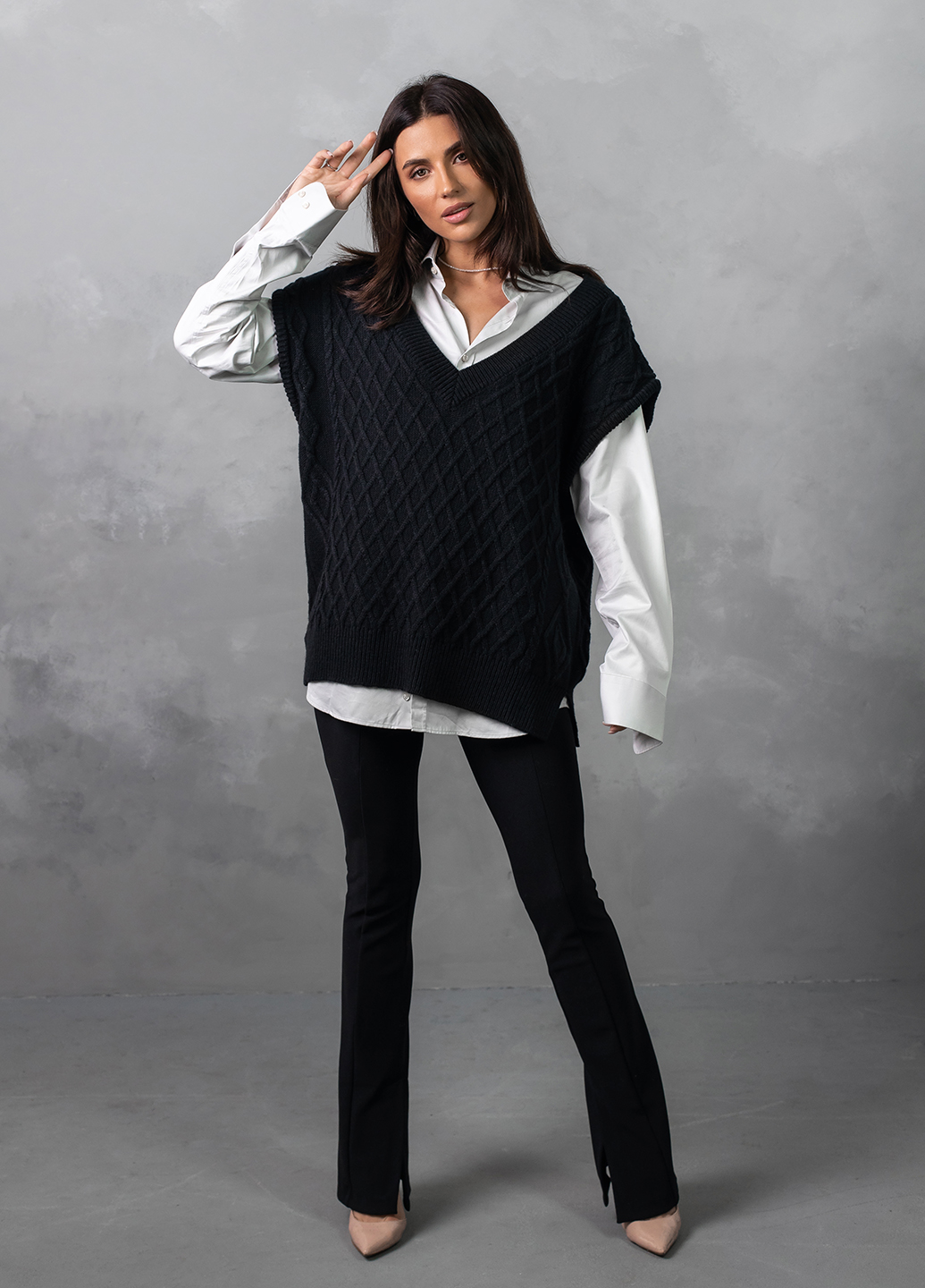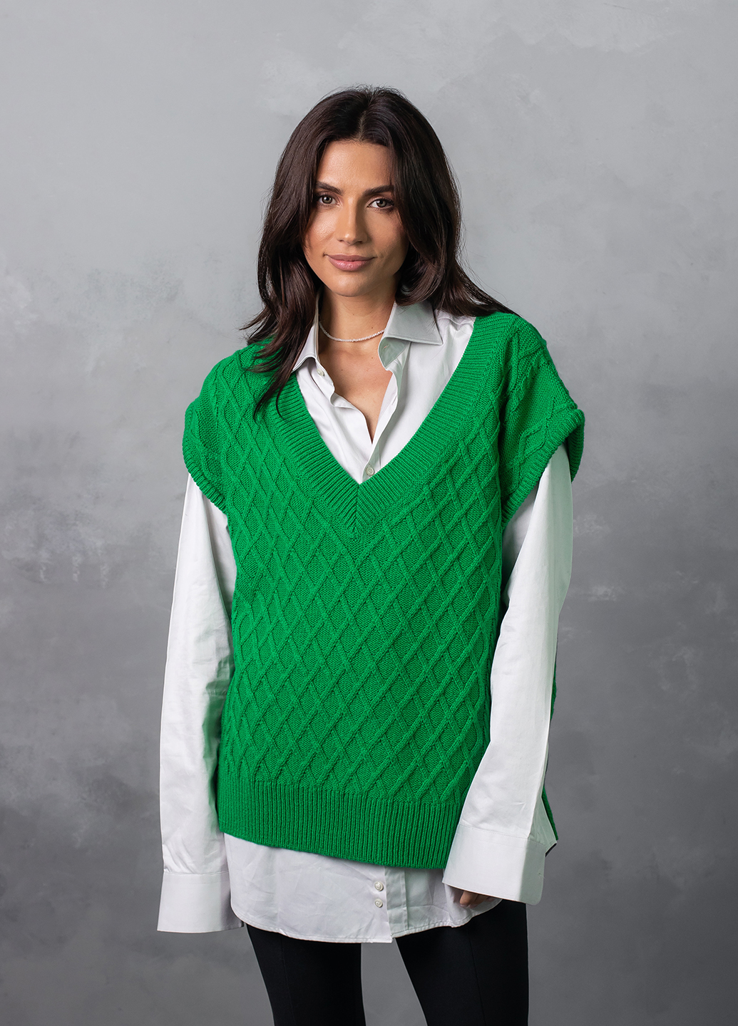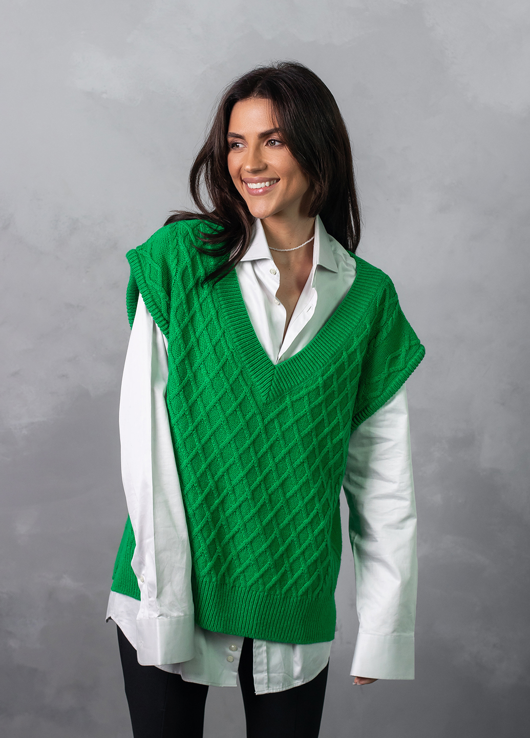 Об'ємний в'язаний жилет оверсайз з глибоким V-подібним вирізом - найяскравіший тренд цього сезону! Завдяки вдалому крою, стильний в'язаний жилет приховає недоліки фігури, а також зробить зону декольте більш привабливою.